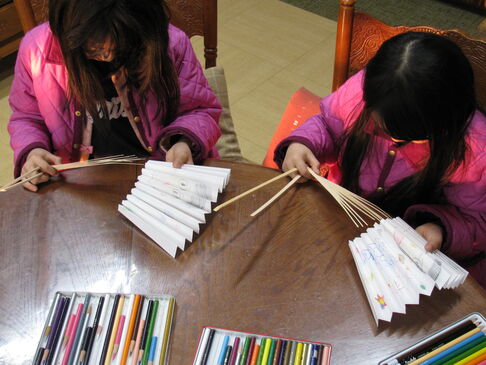 Contents: Draw letters and pictures on white paper folded in strips, and then glue the paper to complete the process.
